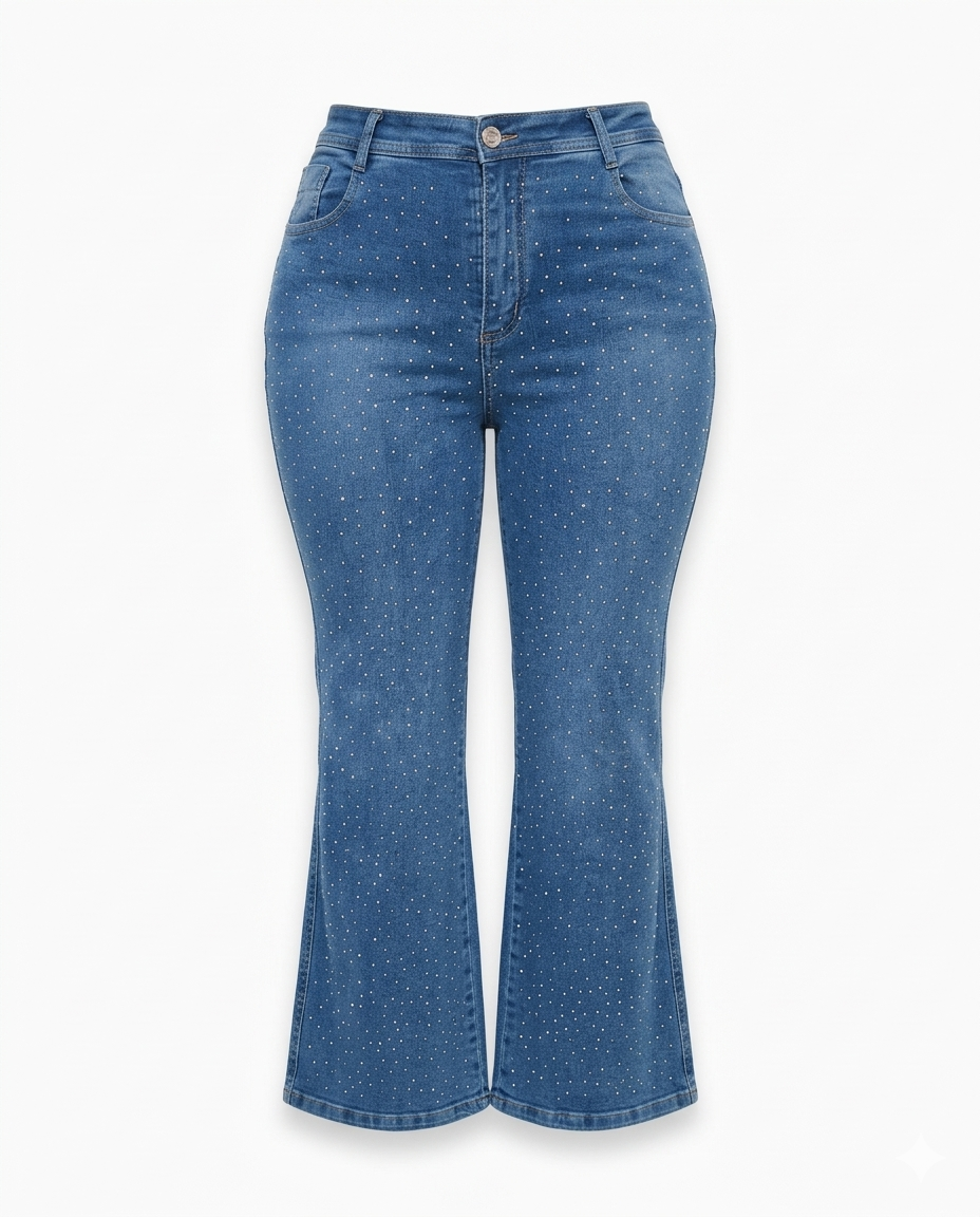JEAN WIDE STRASS ELASTIZADO AZUL LOCALIZADO