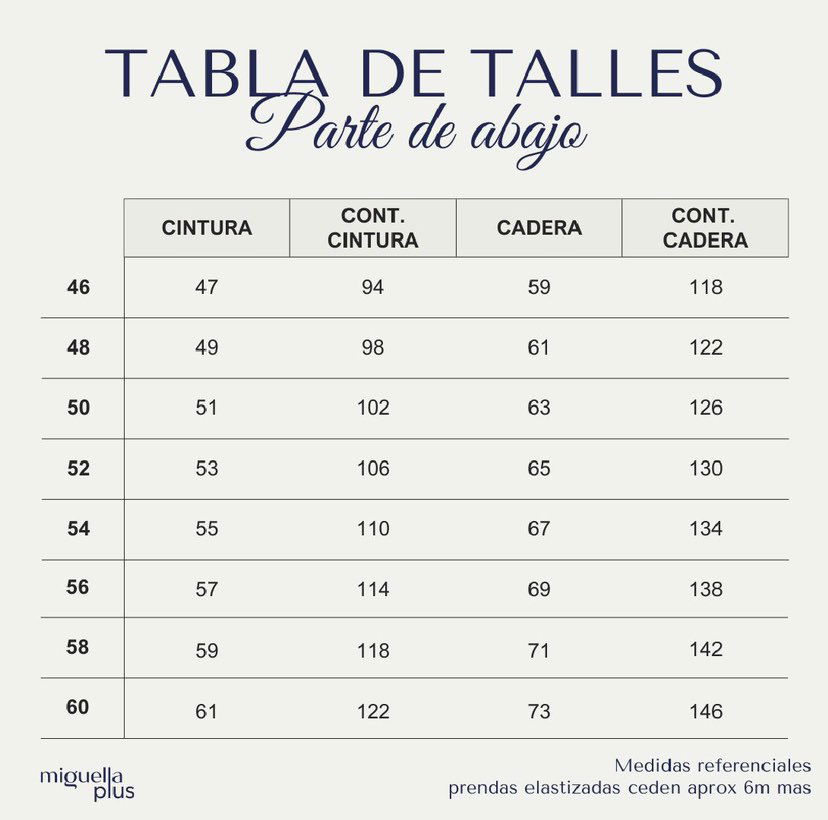 Las medidas corresponden al cuerpo. son referenciales. Pueden variar un poco según el modelo de jean.